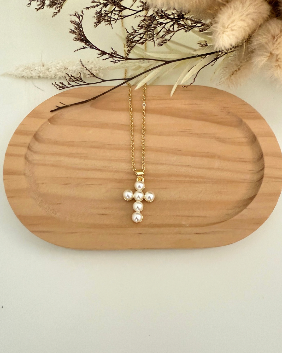 Cadena Cruz en Perlas