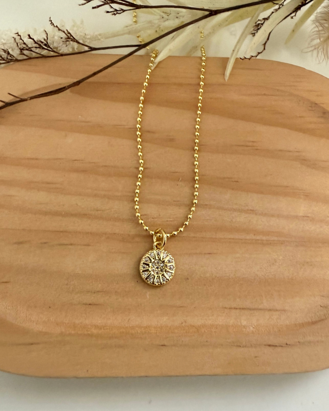 Cadena mide 16” aproximadamente en baño de oro 18k.