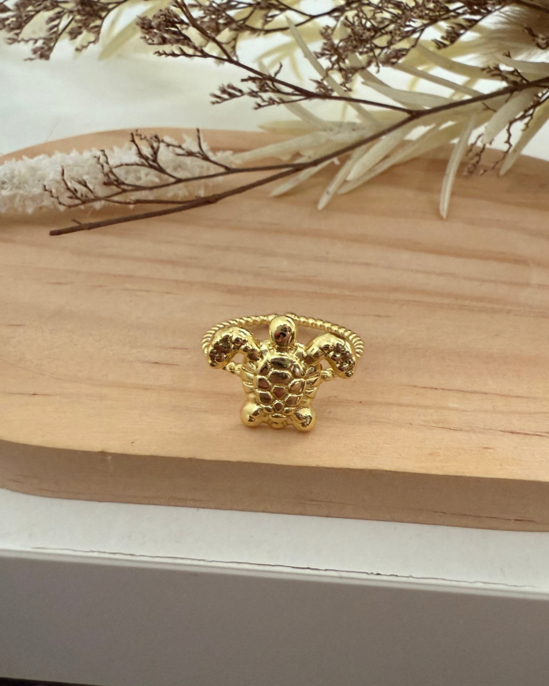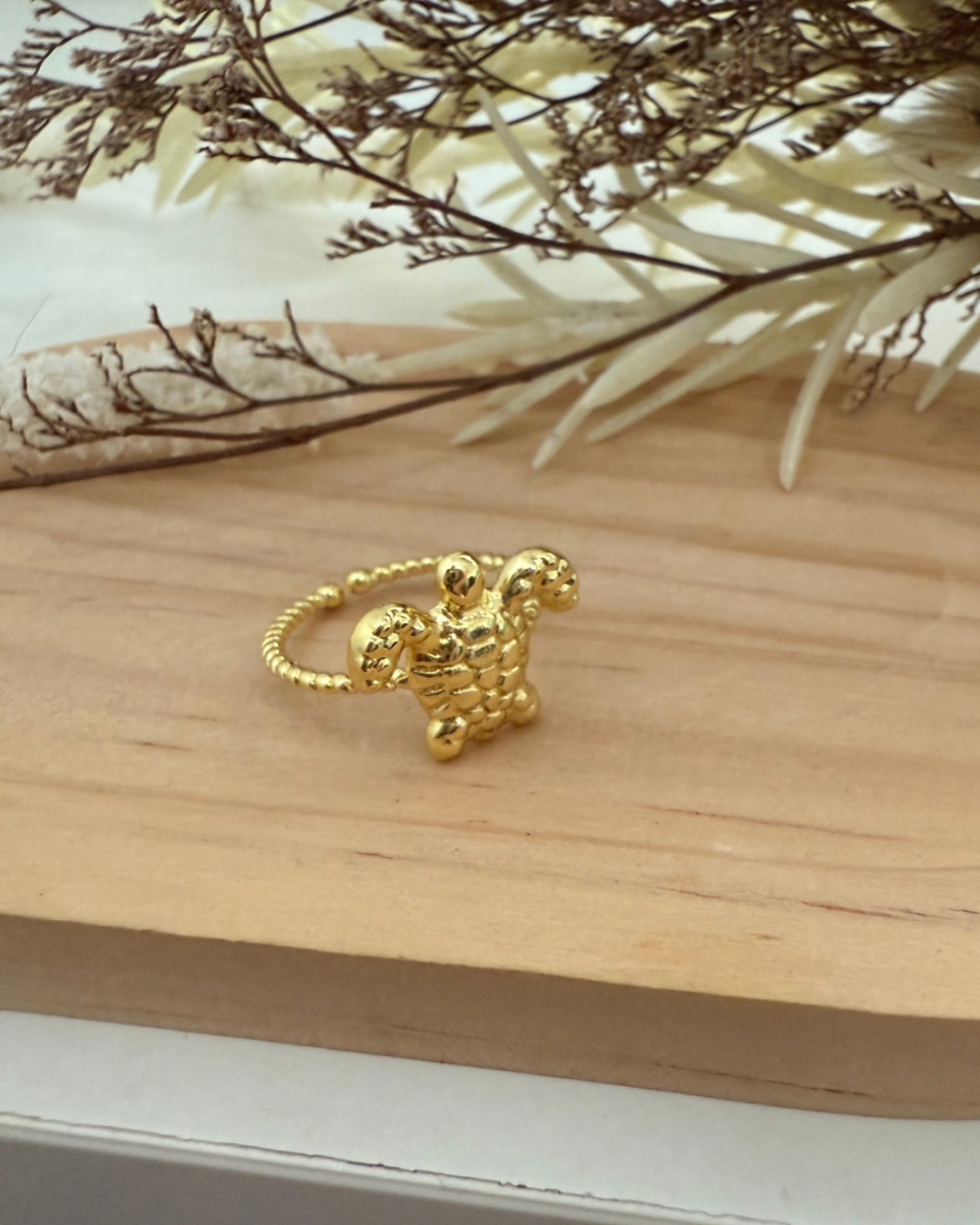 Sortija ajustable en base stainless steel y baño de oro 18.
